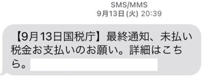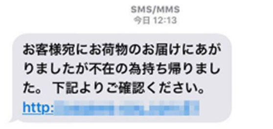 不審なSMSメッセージ、メールに注意