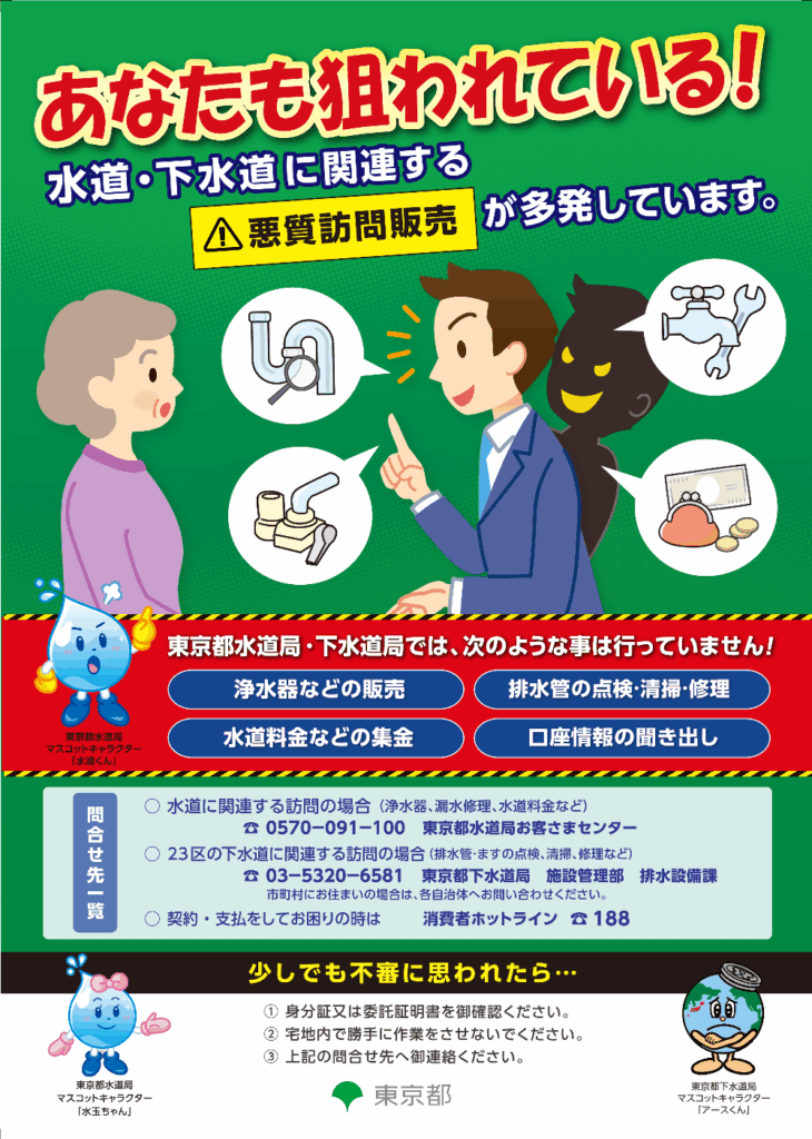 水道局職員を装った悪質な訪問販売や詐欺が多発しています!|水道のトラブル|東京都水道局