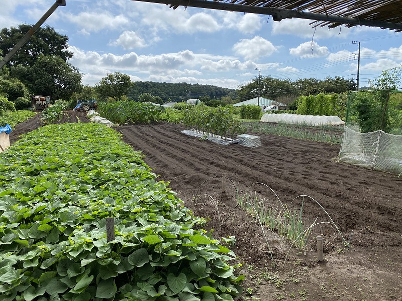 2020年から近隣農地を借用して開始、収穫物は社員以外に直売会(年2回)で安価で地域内に販売を行っています。玉ねぎ、ジャガイモ、里芋やトマト、きゅうり等の野菜などを生産。